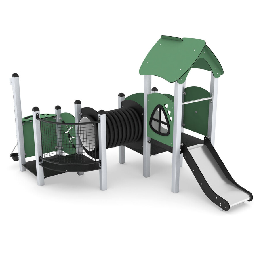 Stappen, kruipen, glijden, fantaseren, de speelmogelijkheden zijn eindeloos op deze speelcombinatie. Niet alleen zitten er heel veel speelwaarden in een speelcombinatie, in verhouding tot losse speeltoestellen neemt een speelcombinatie minder ruimte in beslag. Ideaal voor een kleine speelplek!