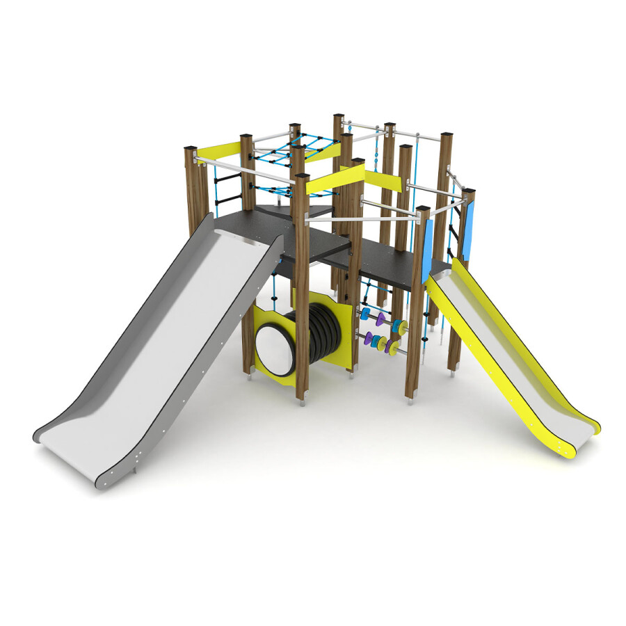 Dit speeltoestel is standaard uitgevoerd met een plywood vloer. Ben je op zoek naar nóg duurzamer speelplezier? Dit speeltoestel is optioneel ook verkrijgbaar met een HPL-vloer. Informeer naar de mogelijkheden.