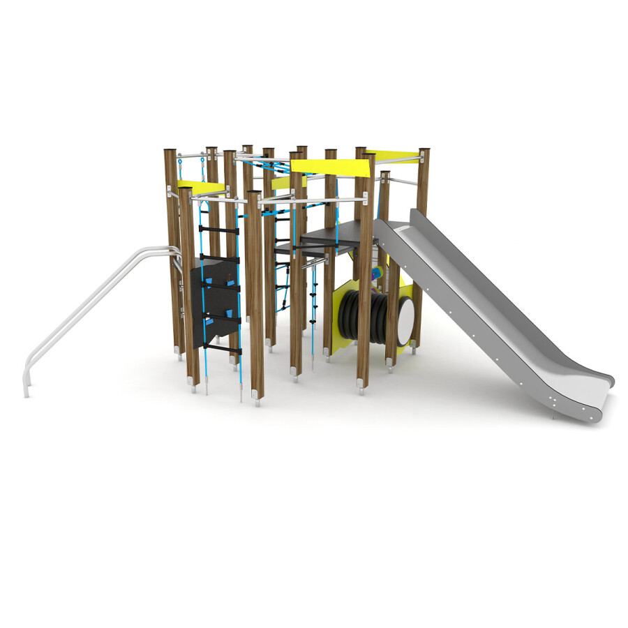 Klauteren, glijden, kruipen, de speelmogelijkheden zijn eindeloos op deze speelcombinatie. Niet alleen zitten er heel veel speelwaarden in een speelcombinatie, in verhouding tot losse speeltoestellen neemt een speelcombinatie minder ruimte in beslag. Ideaal voor een kleine speelplek!