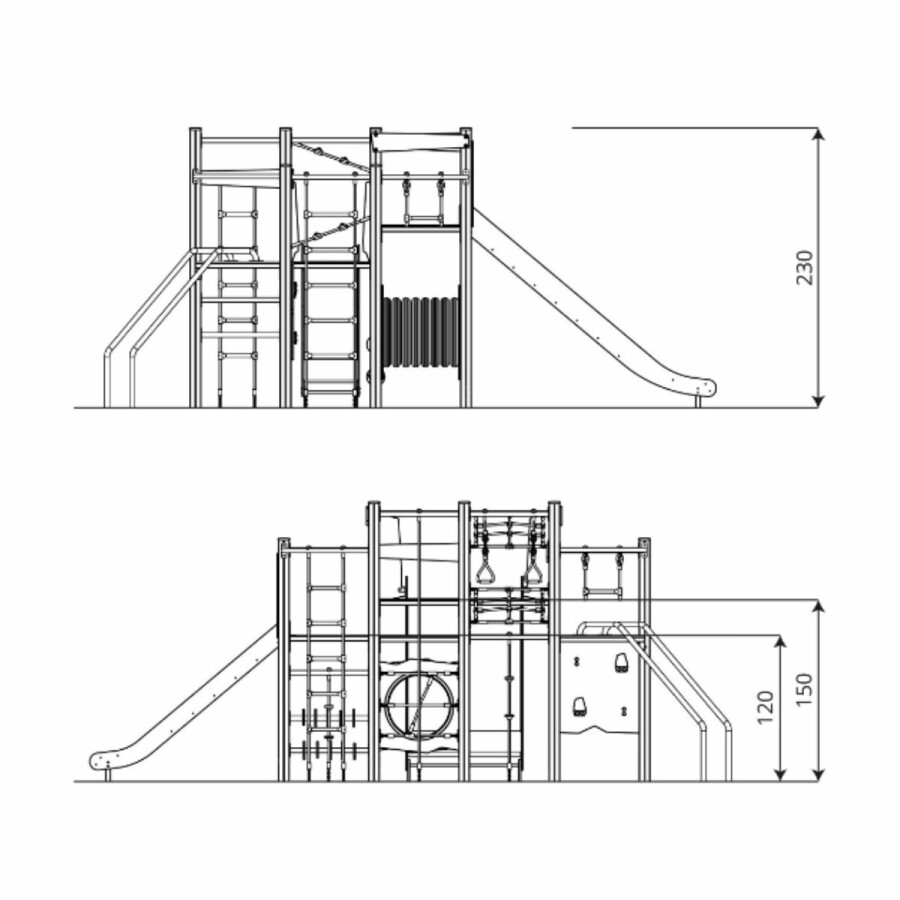 Klauteren, glijden, kruipen, de speelmogelijkheden zijn eindeloos op deze speelcombinatie. Niet alleen zitten er heel veel speelwaarden in een speelcombinatie, in verhouding tot losse speeltoestellen neemt een speelcombinatie minder ruimte in beslag. Ideaal voor een kleine speelplek!