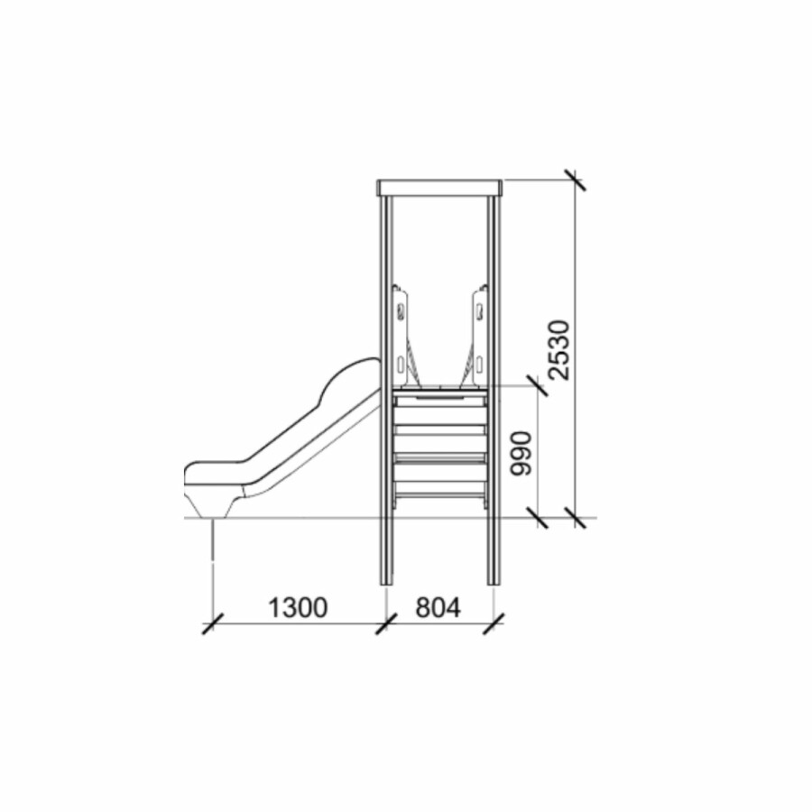 Niet alleen zitten er heel veel speelwaarden in een speelcombinatie, in verhouding tot losse speeltoestellen neemt een speelcombinatie minder ruimte in beslag. Ideaal voor een kleine speelplek!