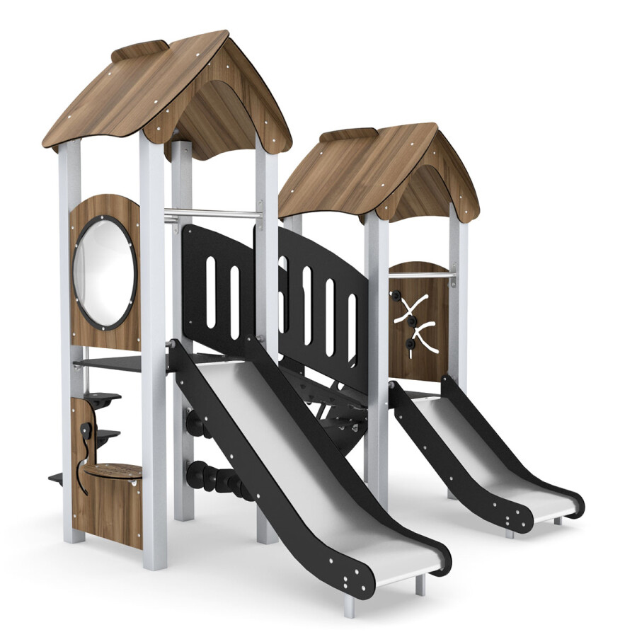 Stappen, glijden, fantaseren, de speelmogelijkheden zijn eindeloos op deze speelcombinatie. Niet alleen zitten er heel veel speelwaarden in een speelcombinatie, in verhouding tot losse speeltoestellen neemt een speelcombinatie minder ruimte in beslag. Ideaal voor een kleine speelplek!