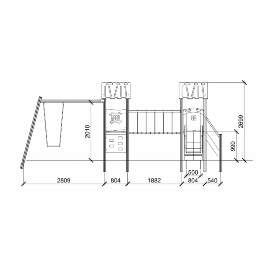 | Type | Alumio, Speelcombinaties met dak, Speelcombinaties met min. 2 torens, Speelcombinaties met schommel(s), Speelcombinaties tot vh 1,5 m |