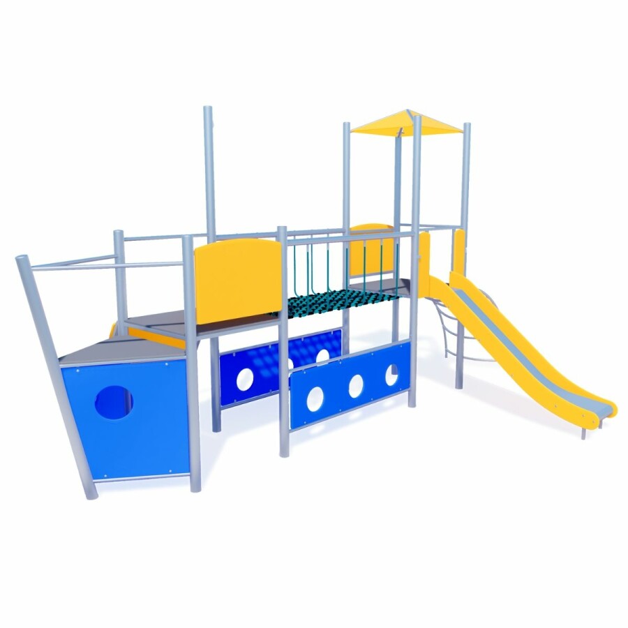 Klauteren, stappen, glijden, de speelmogelijkheden zijn eindeloos op deze speelcombinatie. Niet alleen zitten er heel veel speelwaarden in een speelcombinatie, in verhouding tot losse speeltoestellen neemt een speelcombinatie minder ruimte in beslag. Ideaal voor een kleine speelplek!