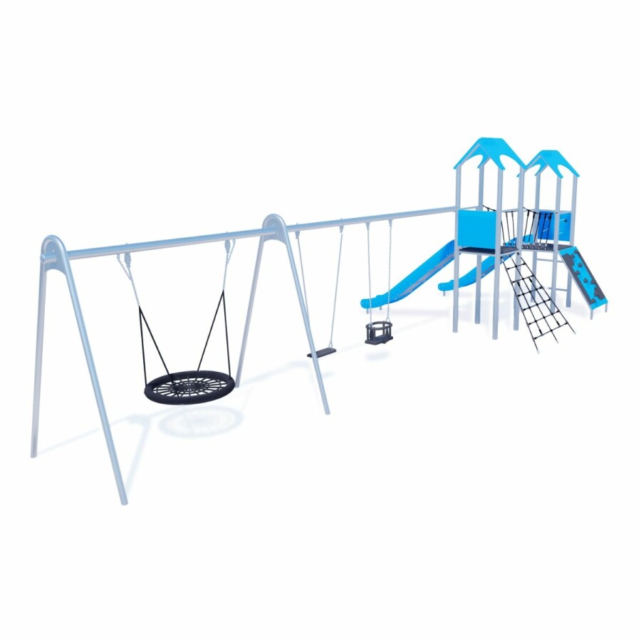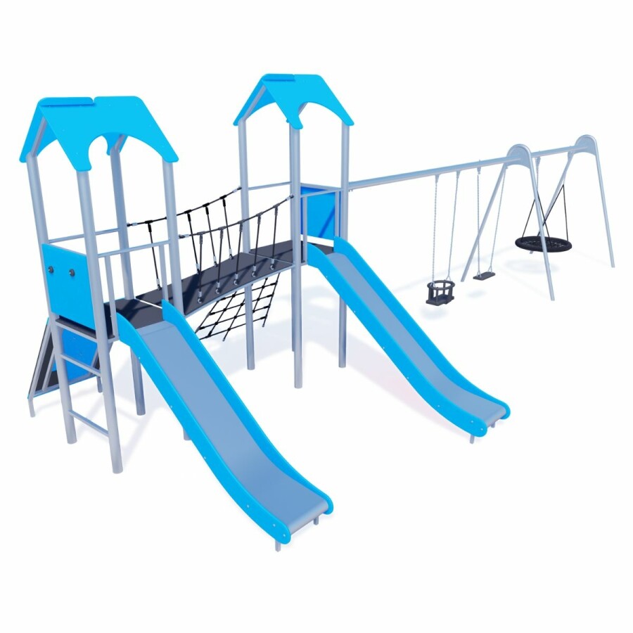 Klauteren, stappen, glijden, de speelmogelijkheden zijn eindeloos op deze speelcombinatie. Niet alleen zitten er heel veel speelwaarden in een speelcombinatie, in verhouding tot losse speeltoestellen neemt een speelcombinatie minder ruimte in beslag. Ideaal voor een kleine speelplek!