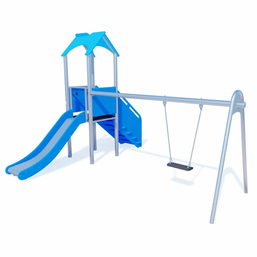 Klauteren, schommelen, glijden, de speelmogelijkheden zijn eindeloos op deze speelcombinatie. Niet alleen zitten er heel veel speelwaarden in een speelcombinatie, in verhouding tot losse speeltoestellen neemt een speelcombinatie minder ruimte in beslag. Ideaal voor een kleine speelplek!