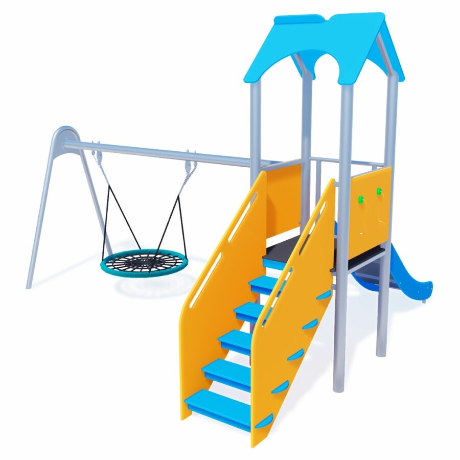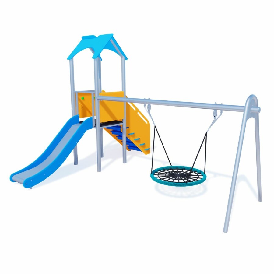 Klauteren, schommelen, glijden, de speelmogelijkheden zijn eindeloos op deze speelcombinatie. Niet alleen zitten er heel veel speelwaarden in een speelcombinatie, in verhouding tot losse speeltoestellen neemt een speelcombinatie minder ruimte in beslag. Ideaal voor een kleine speelplek!
