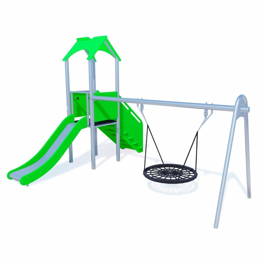 Klauteren, schommelen, glijden, de speelmogelijkheden zijn eindeloos op deze speelcombinatie. Niet alleen zitten er heel veel speelwaarden in een speelcombinatie, in verhouding tot losse speeltoestellen neemt een speelcombinatie minder ruimte in beslag. Ideaal voor een kleine speelplek!
