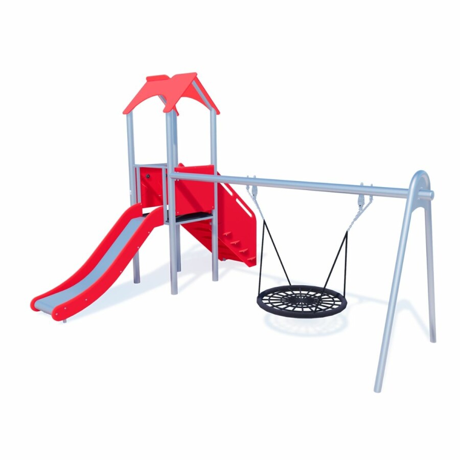 Klauteren, schommelen, glijden, de speelmogelijkheden zijn eindeloos op deze speelcombinatie. Niet alleen zitten er heel veel speelwaarden in een speelcombinatie, in verhouding tot losse speeltoestellen neemt een speelcombinatie minder ruimte in beslag. Ideaal voor een kleine speelplek!
