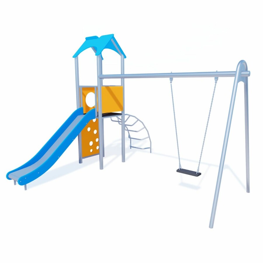 Klauteren, schommelen, glijden, de speelmogelijkheden zijn eindeloos op deze speelcombinatie. Niet alleen zitten er heel veel speelwaarden in een speelcombinatie, in verhouding tot losse speeltoestellen neemt een speelcombinatie minder ruimte in beslag. Ideaal voor een kleine speelplek!