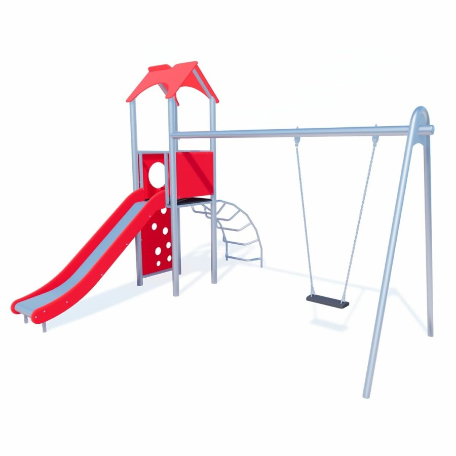 Klauteren, schommelen, glijden, de speelmogelijkheden zijn eindeloos op deze speelcombinatie. Niet alleen zitten er heel veel speelwaarden in een speelcombinatie, in verhouding tot losse speeltoestellen neemt een speelcombinatie minder ruimte in beslag. Ideaal voor een kleine speelplek!