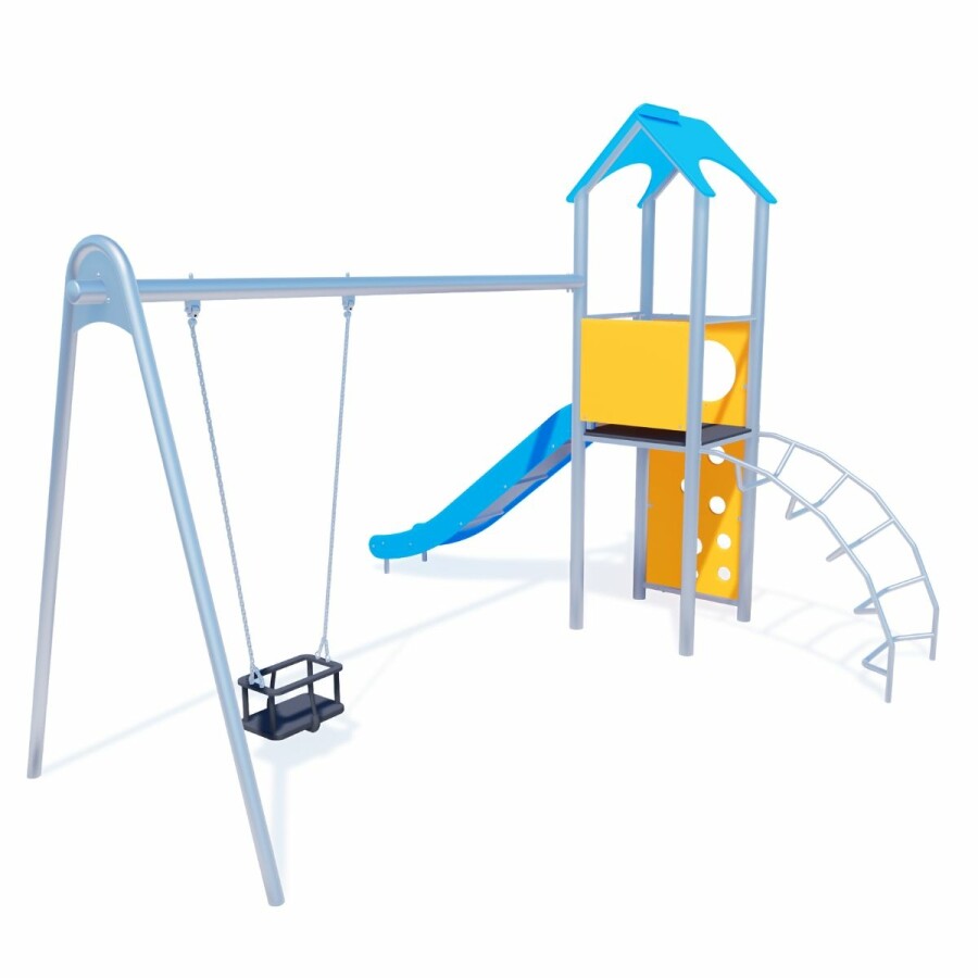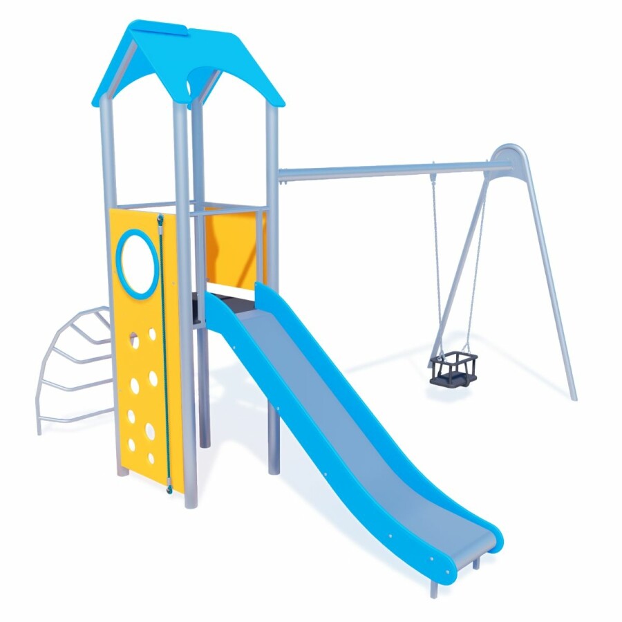 Klauteren, schommelen, glijden, de speelmogelijkheden zijn eindeloos op deze speelcombinatie. Niet alleen zitten er heel veel speelwaarden in een speelcombinatie, in verhouding tot losse speeltoestellen neemt een speelcombinatie minder ruimte in beslag. Ideaal voor een kleine speelplek!