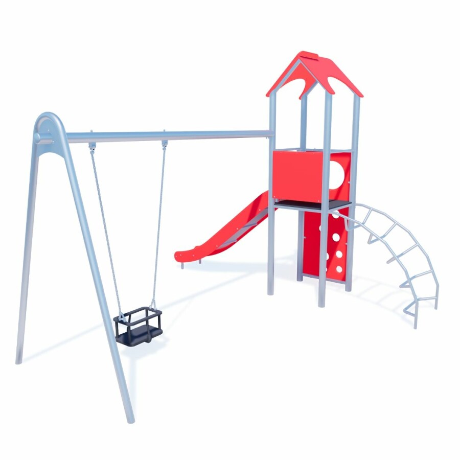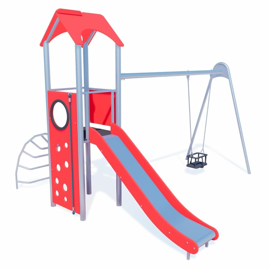Klauteren, schommelen, glijden, de speelmogelijkheden zijn eindeloos op deze speelcombinatie. Niet alleen zitten er heel veel speelwaarden in een speelcombinatie, in verhouding tot losse speeltoestellen neemt een speelcombinatie minder ruimte in beslag. Ideaal voor een kleine speelplek!