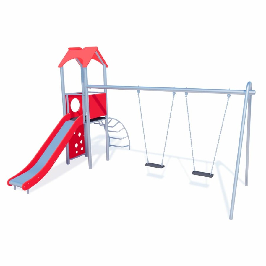 Klauteren, schommelen, glijden, de speelmogelijkheden zijn eindeloos op deze speelcombinatie. Niet alleen zitten er heel veel speelwaarden in een speelcombinatie, in verhouding tot losse speeltoestellen neemt een speelcombinatie minder ruimte in beslag. Ideaal voor een kleine speelplek!
