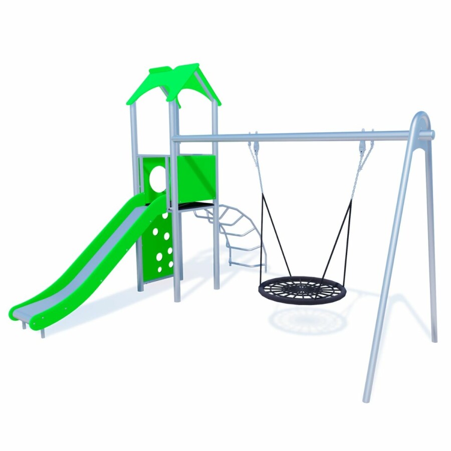 Klauteren, schommelen, glijden, de speelmogelijkheden zijn eindeloos op deze speelcombinatie. Niet alleen zitten er heel veel speelwaarden in een speelcombinatie, in verhouding tot losse speeltoestellen neemt een speelcombinatie minder ruimte in beslag. Ideaal voor een kleine speelplek!