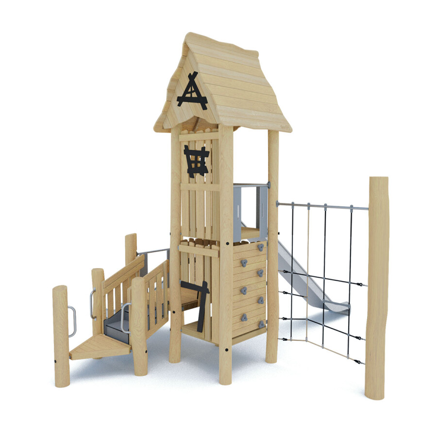 Klauteren, glijden, balanceren, de speelmogelijkheden zijn eindeloos op deze speelcombinatie. Niet alleen zitten er heel veel speelwaarden in een speelcombinatie, in verhouding tot losse speeltoestellen neemt een speelcombinatie minder ruimte in beslag. Ideaal voor een kleine speelplek!