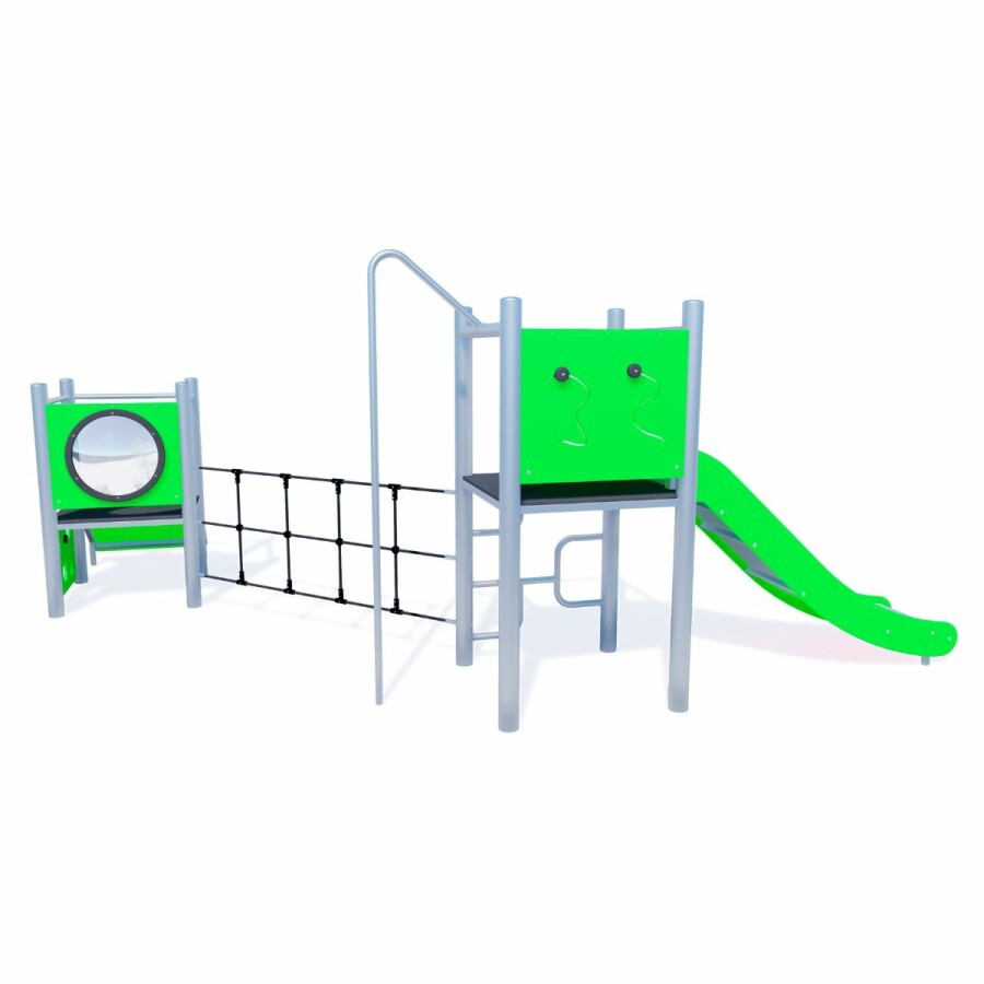 Niet alleen zitten er heel veel speelwaarden in een speelcombinatie, in verhouding tot losse speeltoestellen neemt een speelcombinatie minder ruimte in beslag. Ideaal voor een kleine speelplek!
