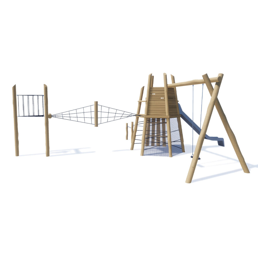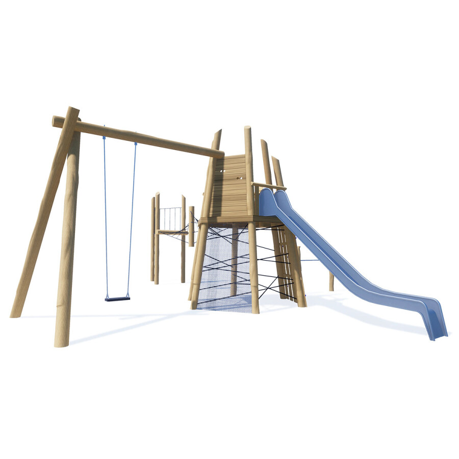 Niet alleen zitten er heel veel speelwaarden in een speelcombinatie, in verhouding tot losse speeltoestellen neemt een speelcombinatie minder ruimte in beslag. Ideaal voor een kleine speelplek!