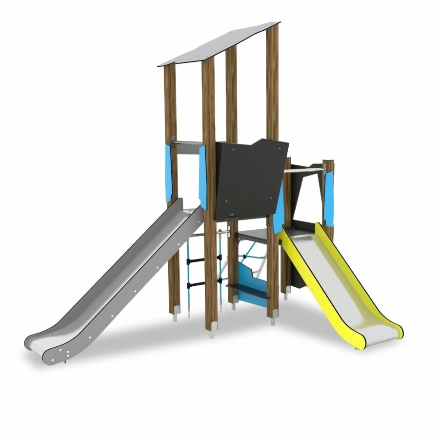 Klauteren, klimmen, glijden, de speelmogelijkheden zijn eindeloos op deze speelcombinatie. Niet alleen zitten er heel veel speelwaarden in een speelcombinatie, in verhouding tot losse speeltoestellen neemt een speelcombinatie minder ruimte in beslag. Ideaal voor een kleine speelplek!