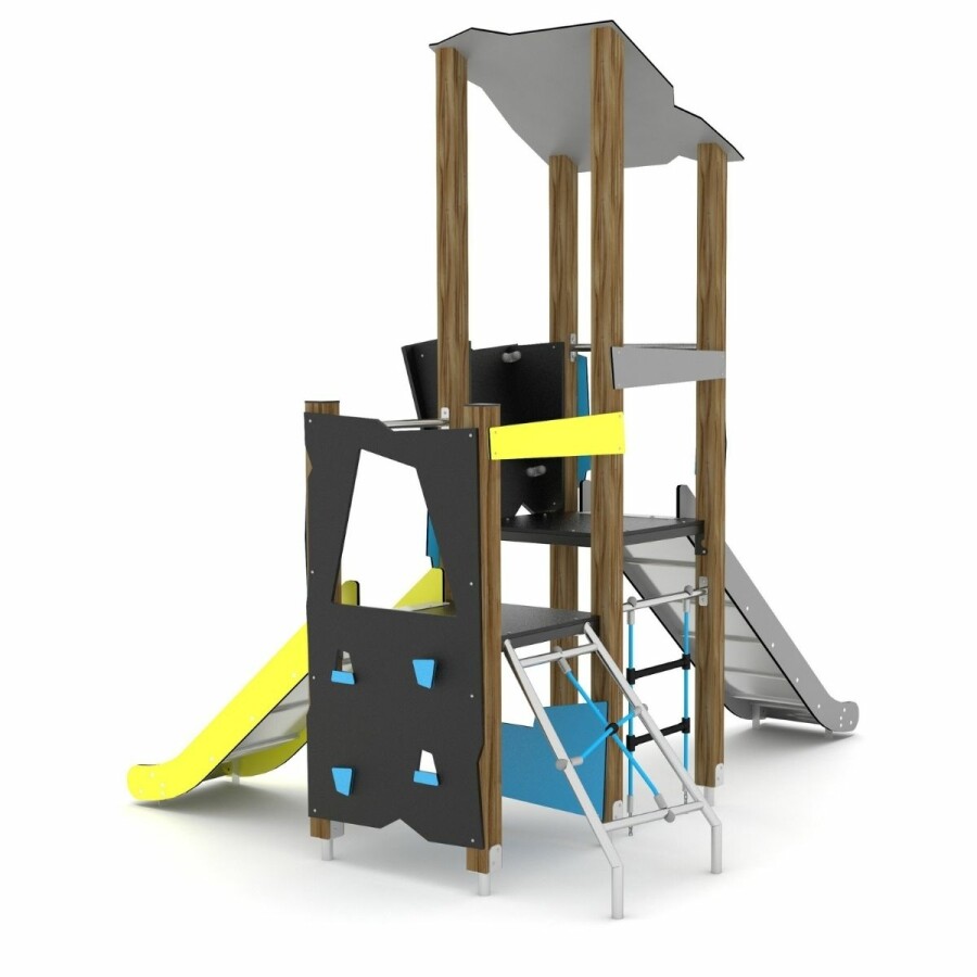 Dit speeltoestel is standaard uitgevoerd met een plywood vloer. Ben je op zoek naar nóg duurzamer speelplezier? Dit speeltoestel is optioneel ook verkrijgbaar met een HPL-vloer. Informeer naar de mogelijkheden.