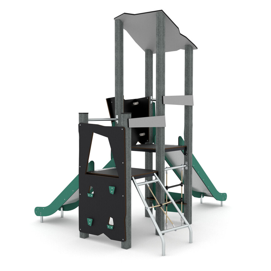 Klauteren, klimmen, glijden, de speelmogelijkheden zijn eindeloos op deze speelcombinatie.