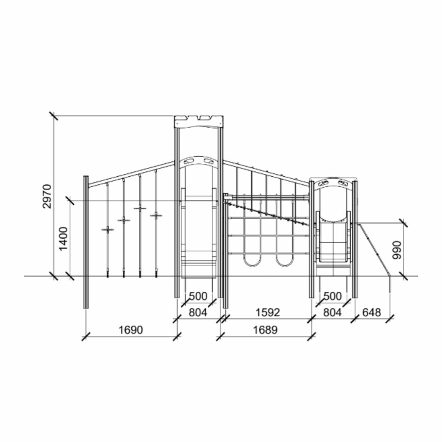 Klauteren, glijden, balanceren, de speelmogelijkheden zijn eindeloos op deze speelcombinatie. Niet alleen zitten er heel veel speelwaarden in een speelcombinatie, in verhouding tot losse speeltoestellen neemt een speelcombinatie minder ruimte in beslag. Ideaal voor een kleine speelplek!