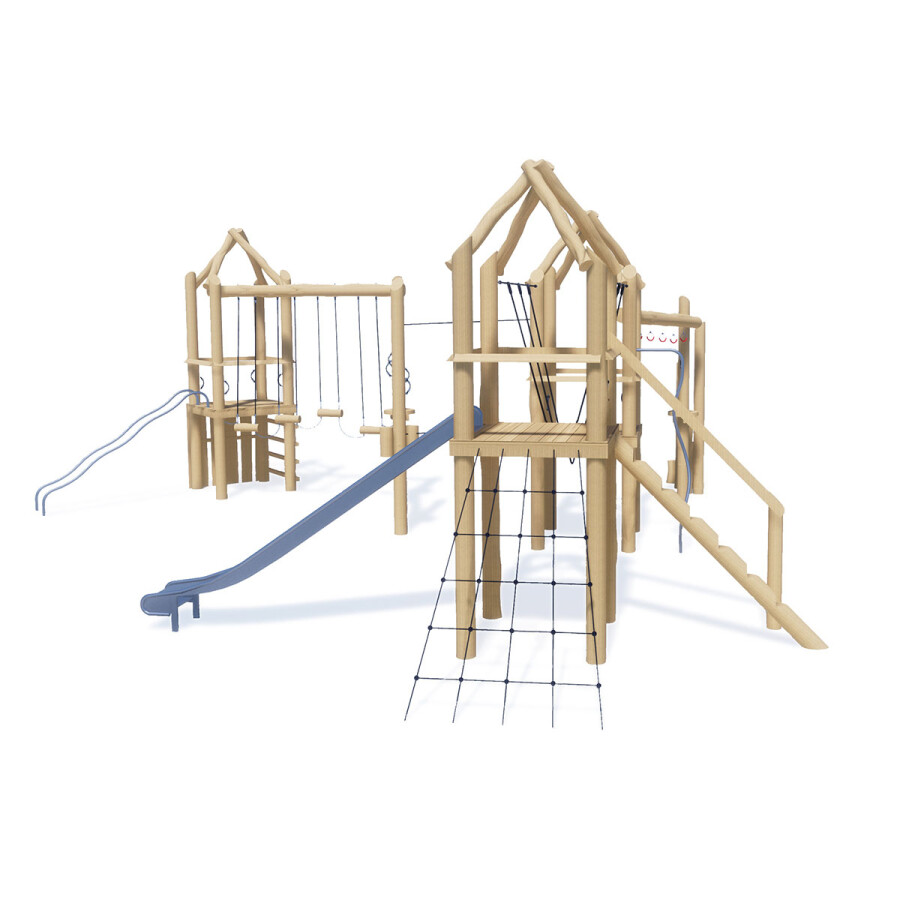 Niet alleen zitten er heel veel speelwaarden in een speelcombinatie, in verhouding tot losse speeltoestellen neemt een speelcombinatie minder ruimte in beslag. Ideaal voor een kleine speelplek!