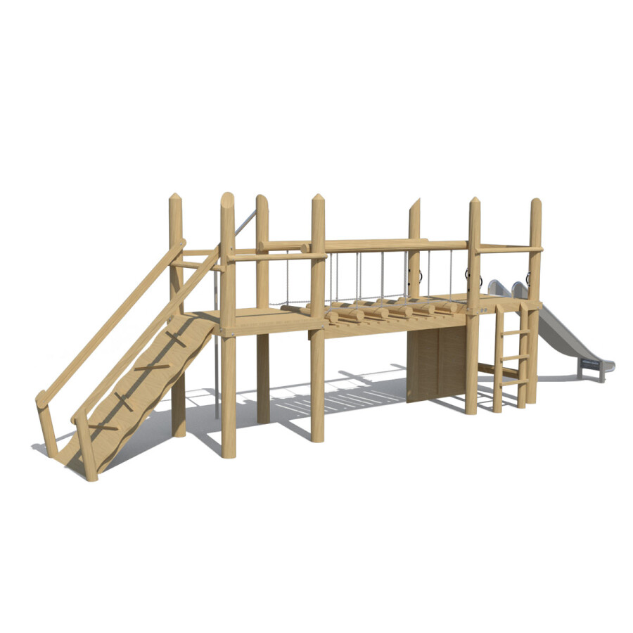 Niet alleen zitten er heel veel speelwaarden in een speelcombinatie, in verhouding tot losse speeltoestellen neemt een speelcombinatie minder ruimte in beslag. Ideaal voor een kleine speelplek!