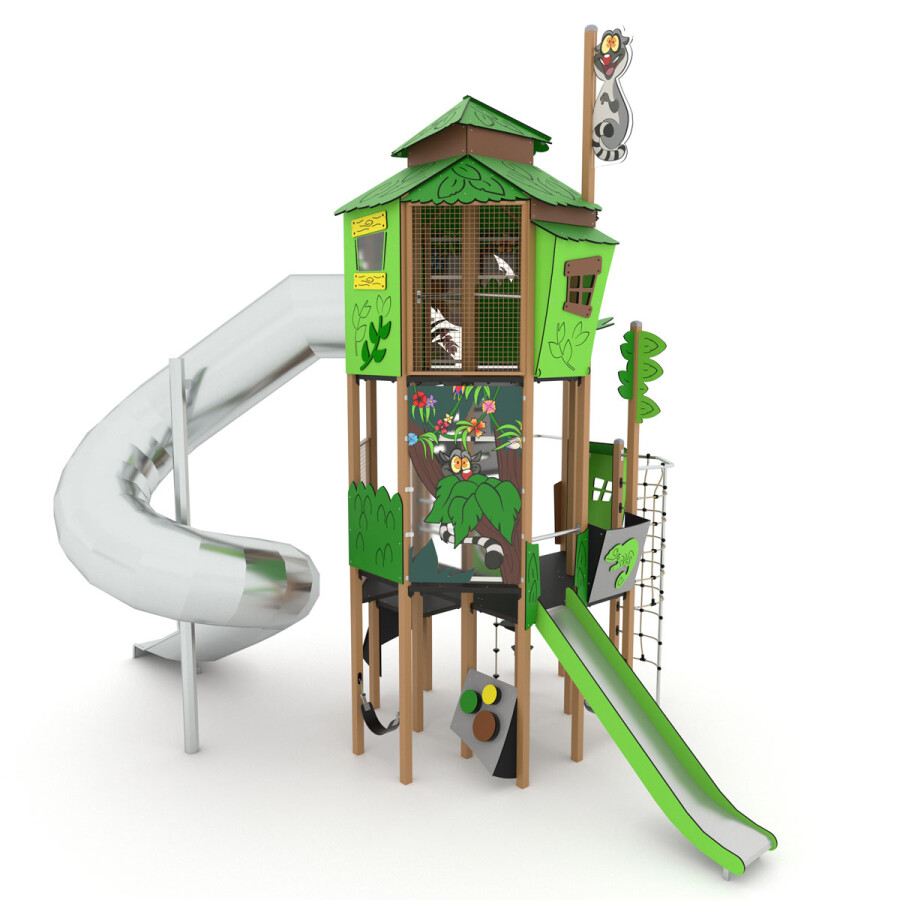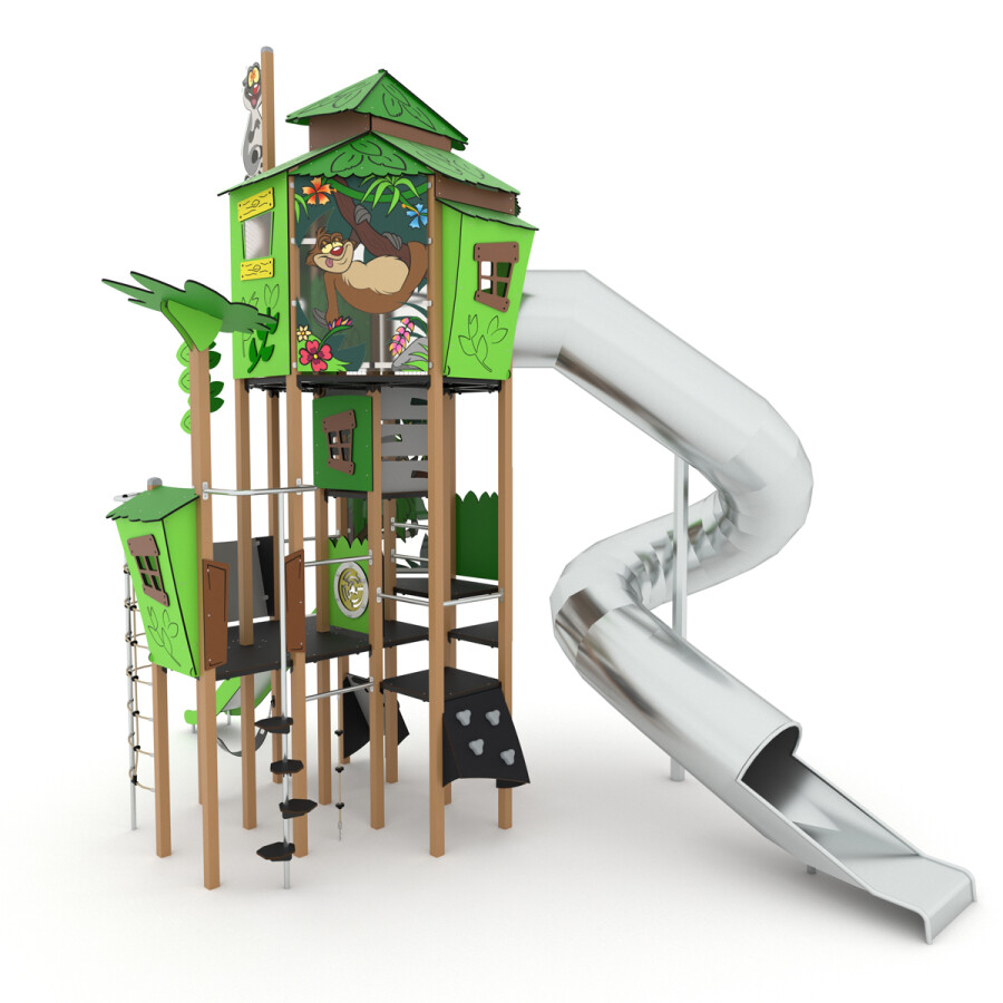 Roep je vriendjes bij elkaar en ga op ontdekkingstocht door de ruige jungle. Deze multifunctionele speeljungle bevat diverse speelniveaus, waardoor dit toestel uitermate geschikt is voor elke leeftijd.
