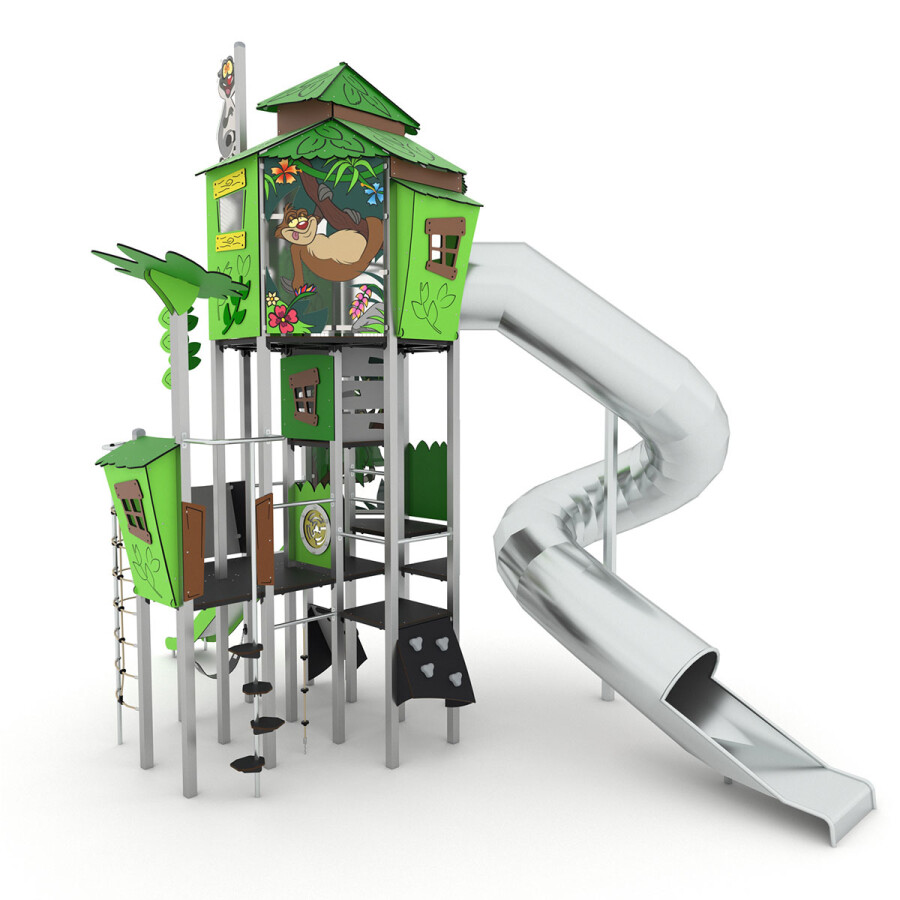 Roep je vriendjes bij elkaar en ga op ontdekkingstocht door de ruige jungle. Deze multifunctionele speeljungle bevat diverse speelniveaus, waardoor dit toestel uitermate geschikt is voor elke leeftijd.