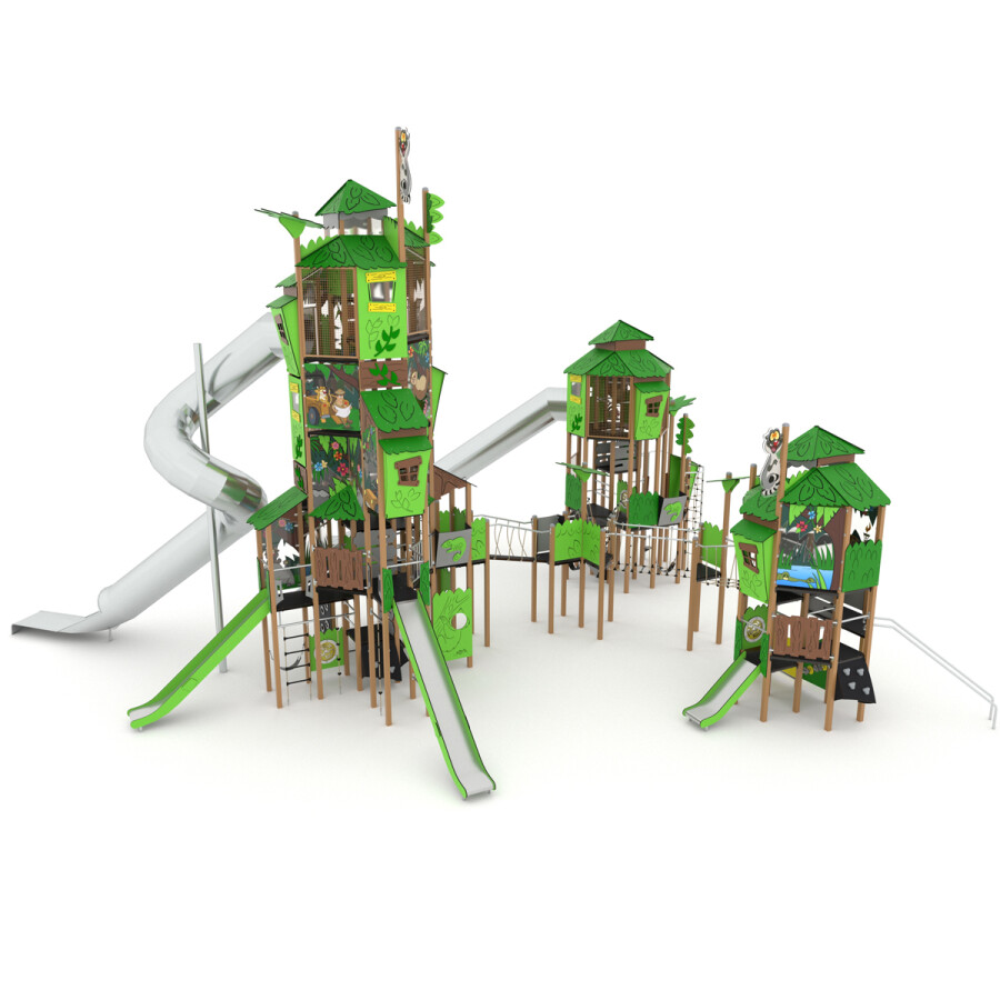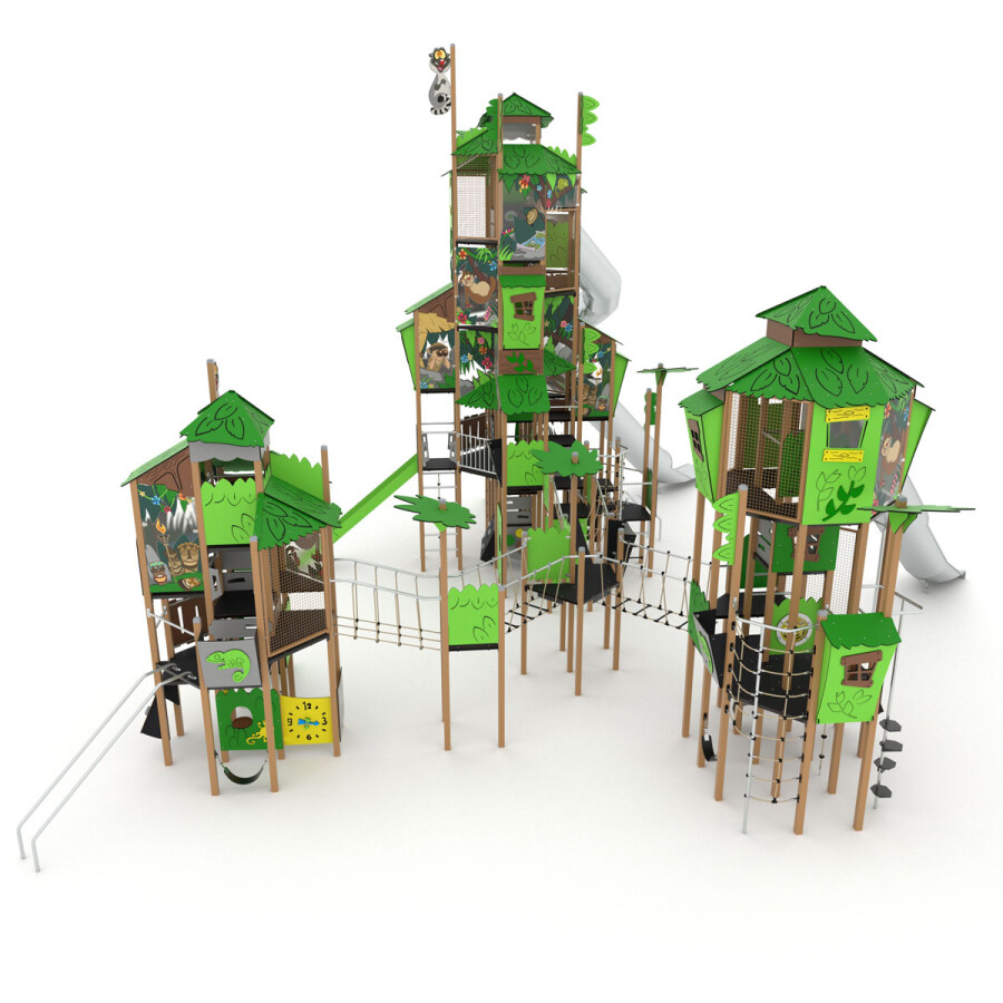Roep je vriendjes bij elkaar en ga op ontdekkingstocht door de ruige jungle. Deze multifunctionele speeljungle bevat diverse speelniveaus, waardoor dit toestel uitermate geschikt is voor elke leeftijd.