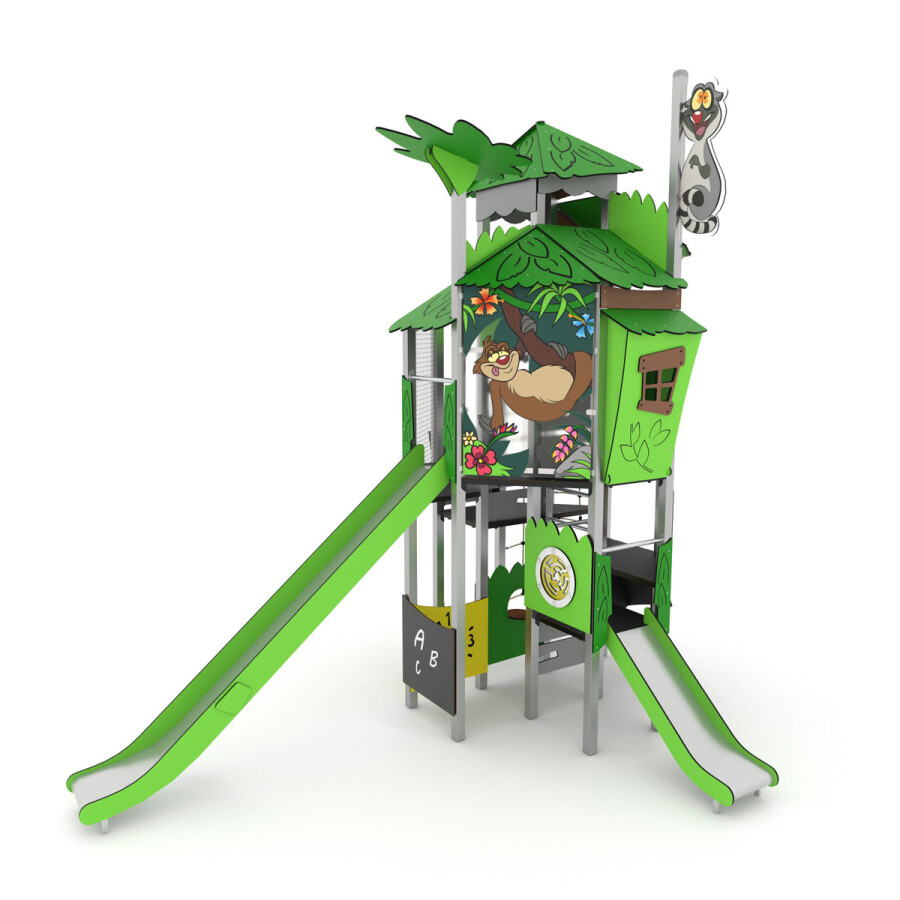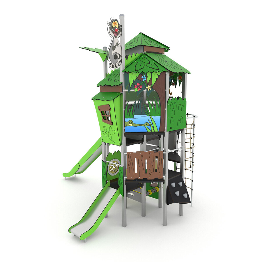 Roep je vriendjes bij elkaar en ga op ontdekkingstocht door de ruige jungle. Deze multifunctionele speeljungle bevat diverse speelniveaus, waardoor dit toestel uitermate geschikt is voor elke leeftijd.