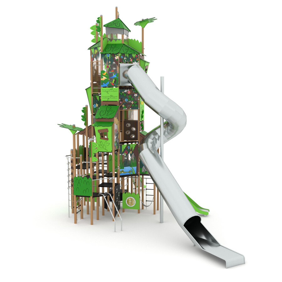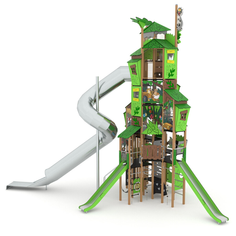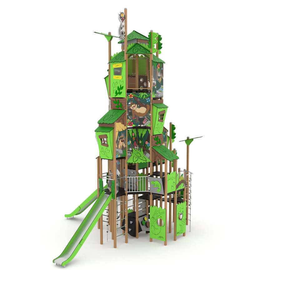Roep je vriendjes bij elkaar en ga op ontdekkingstocht door de ruige jungle. Deze multifunctionele speeljungle bevat diverse speelniveaus, waardoor dit toestel uitermate geschikt is voor elke leeftijd.
