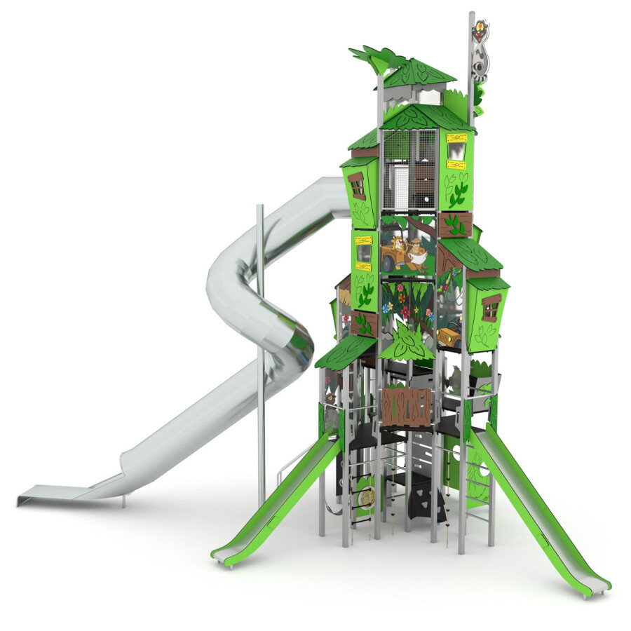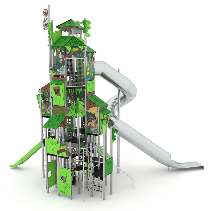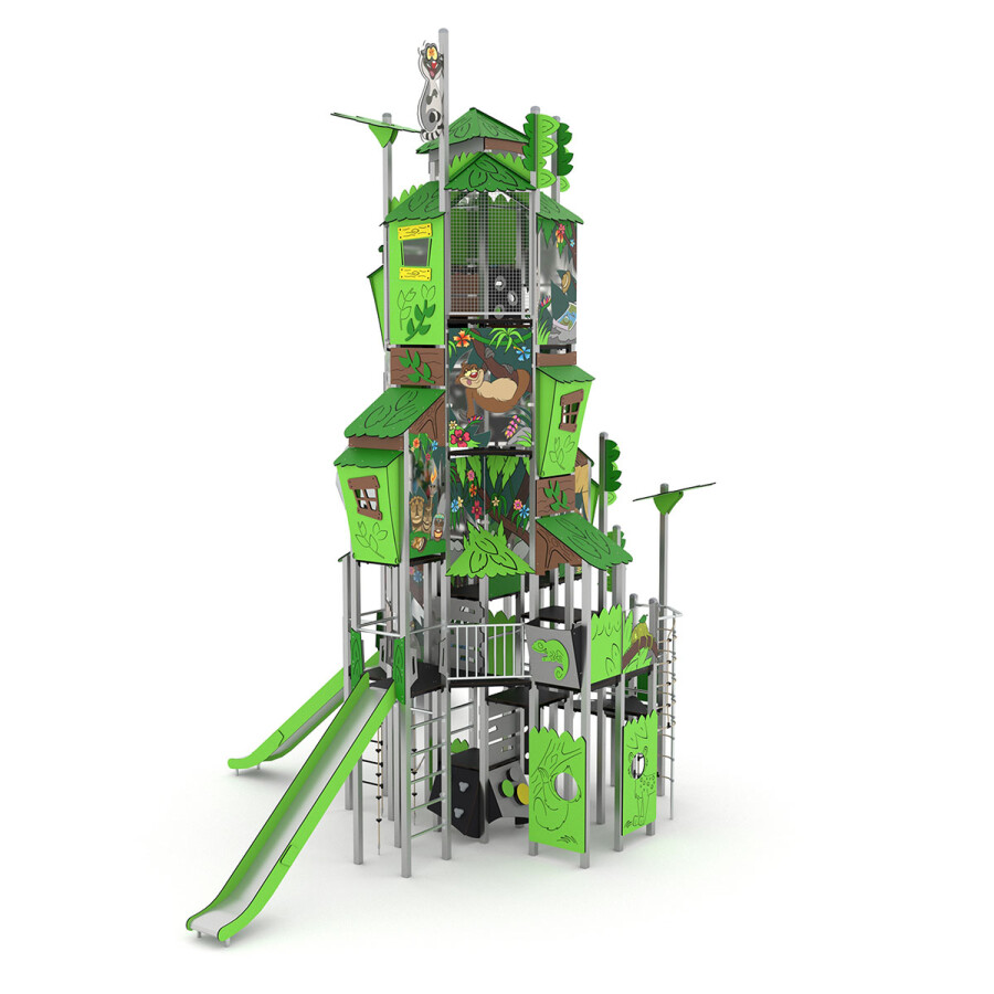Roep je vriendjes bij elkaar en ga op ontdekkingstocht door de ruige jungle. Deze multifunctionele speeljungle bevat diverse speelniveaus, waardoor dit toestel uitermate geschikt is voor elke leeftijd.
