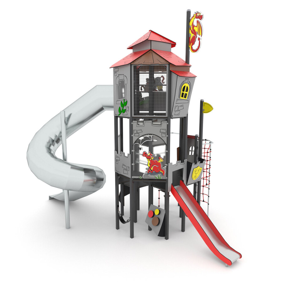 Roep je vriendjes bij elkaar en ga op ontdekkingstocht door dit oude kasteel. Versla jij de vijand? Dit multifunctionele speelkasteel bevat diverse speelniveaus, waardoor dit toestel uitermate geschikt is voor elke leeftijd.