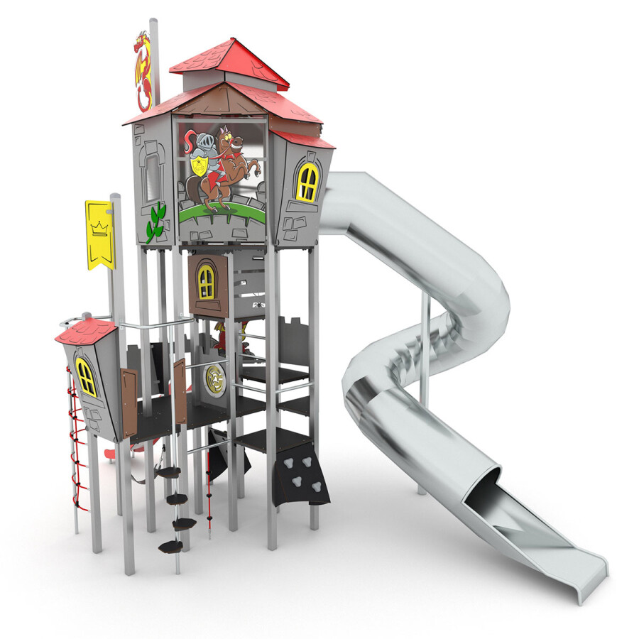 Roep je vriendjes bij elkaar en ga op ontdekkingstocht door dit oude kasteel. Versla jij de vijand? Dit multifunctionele speelkasteel bevat diverse speelniveaus, waardoor dit toestel uitermate geschikt is voor elke leeftijd.
