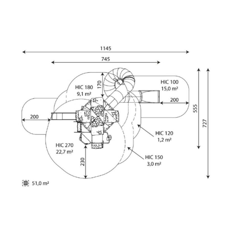 | Opvangzone | 11,5 x 7,3 m |