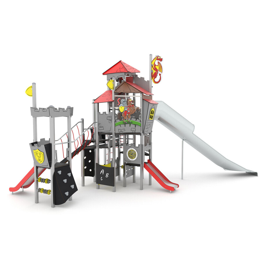 Roep je vriendjes bij elkaar en ga op ontdekkingstocht door dit oude kasteel. Versla jij de vijand? Dit multifunctionele speelkasteel bevat diverse speelniveaus, waardoor dit toestel uitermate geschikt is voor elke leeftijd.