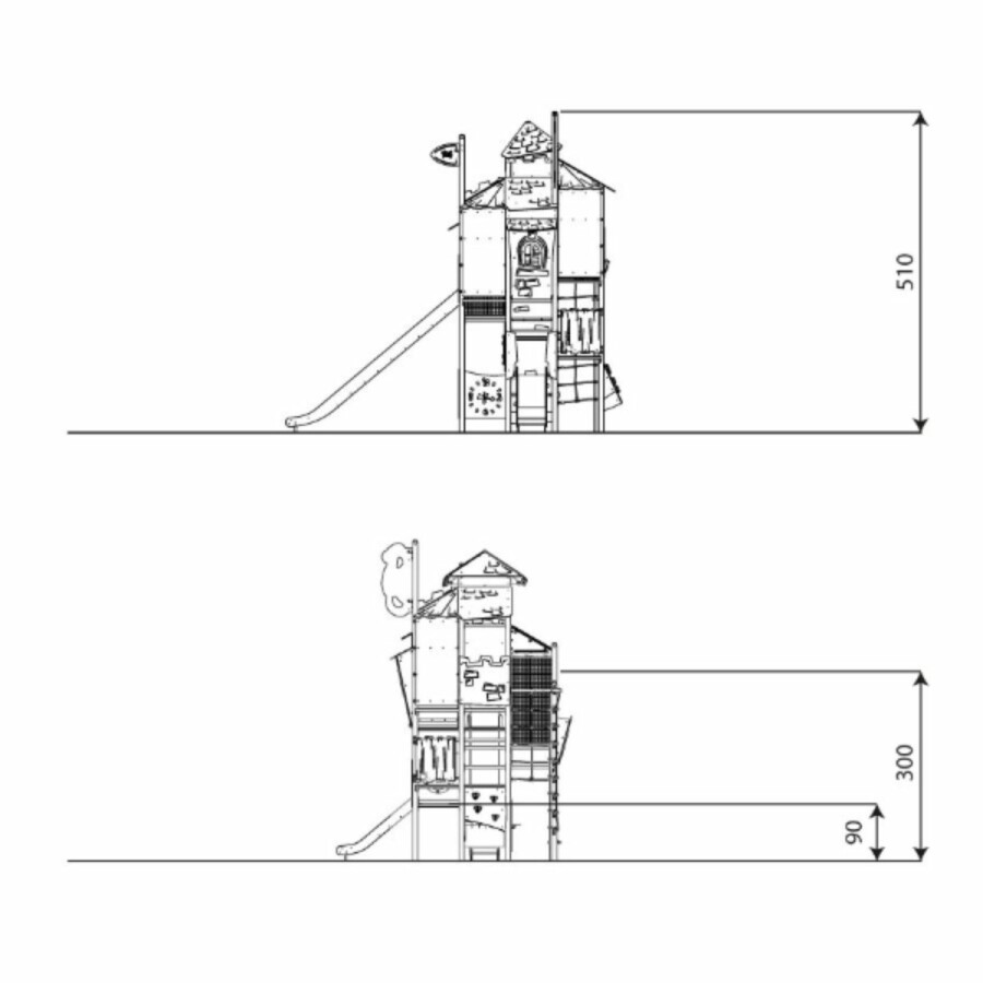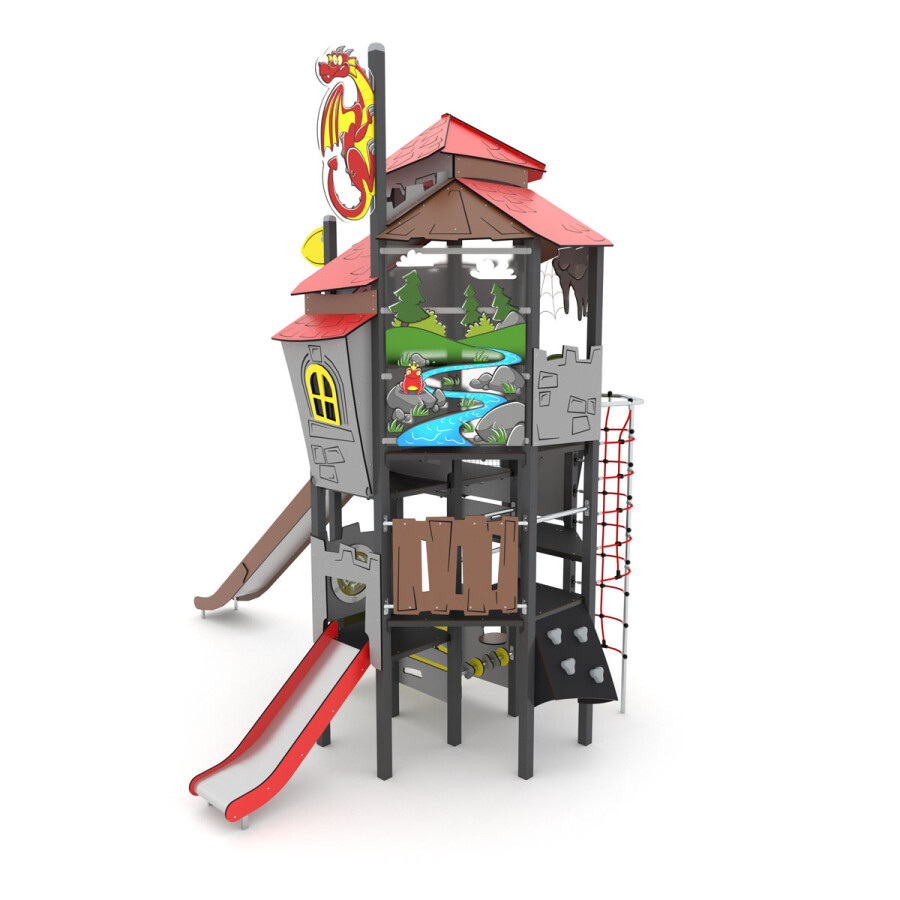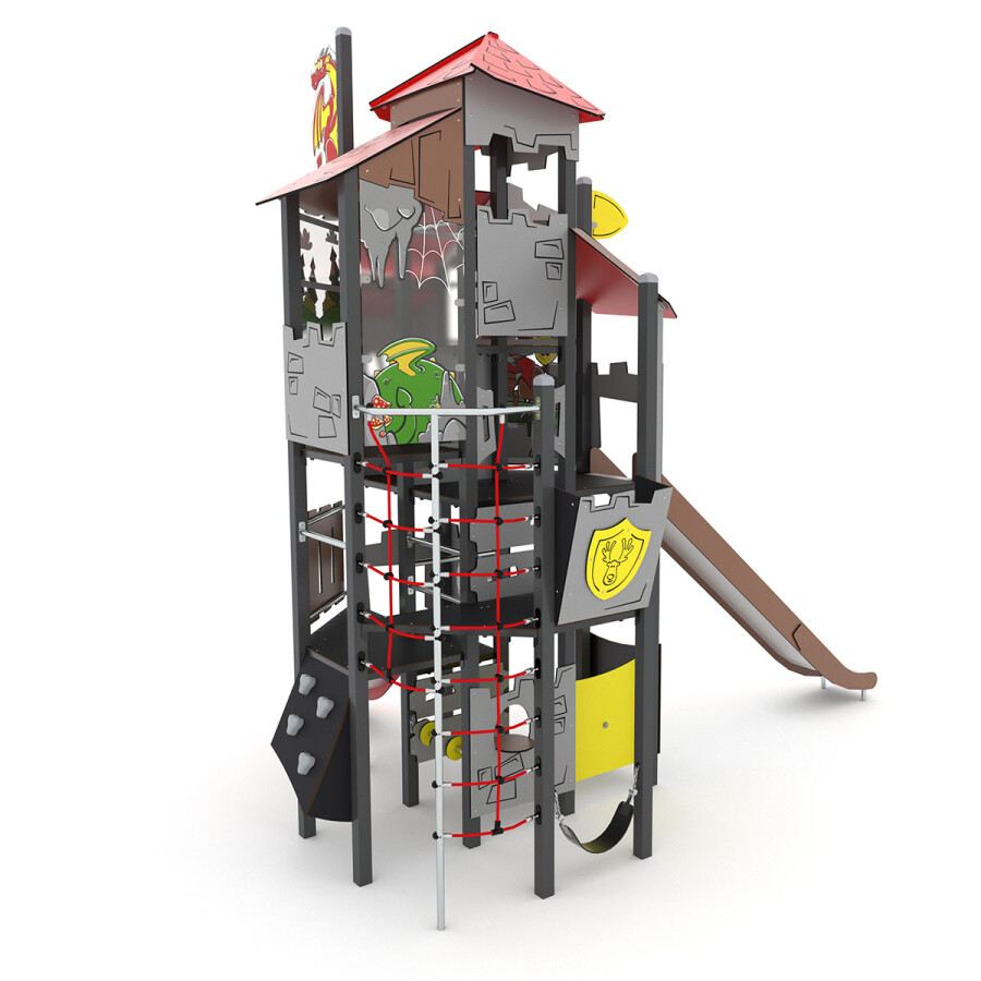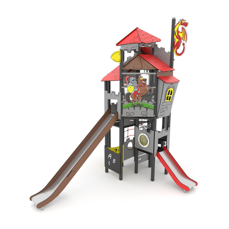Roep je vriendjes bij elkaar en ga op ontdekkingstocht door dit oude kasteel. Versla jij de vijand? Dit multifunctionele speelkasteel bevat diverse speelniveaus, waardoor dit toestel uitermate geschikt is voor elke leeftijd.