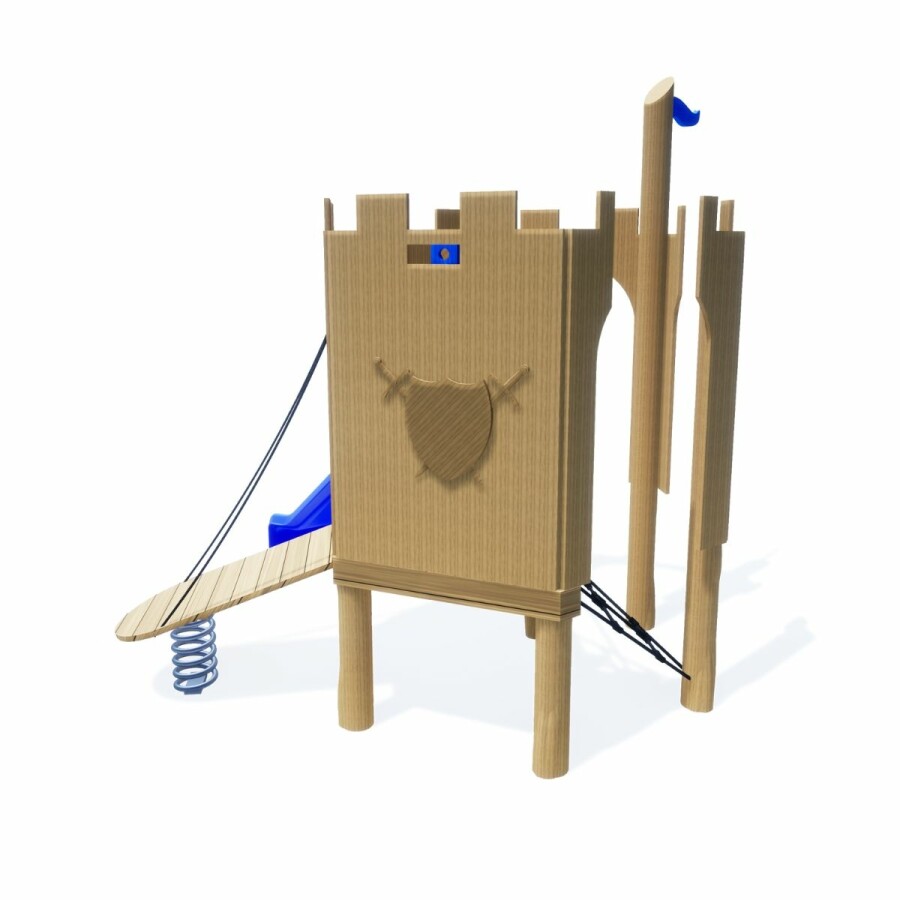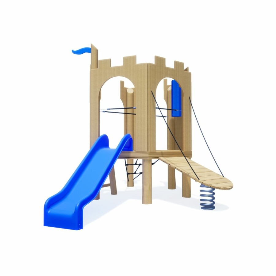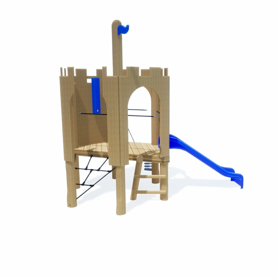 Deze glijbaantoren bevat kruipplateau's, waardoor dit toestel uitermate geschikt is voor de jongere doelgroep.
