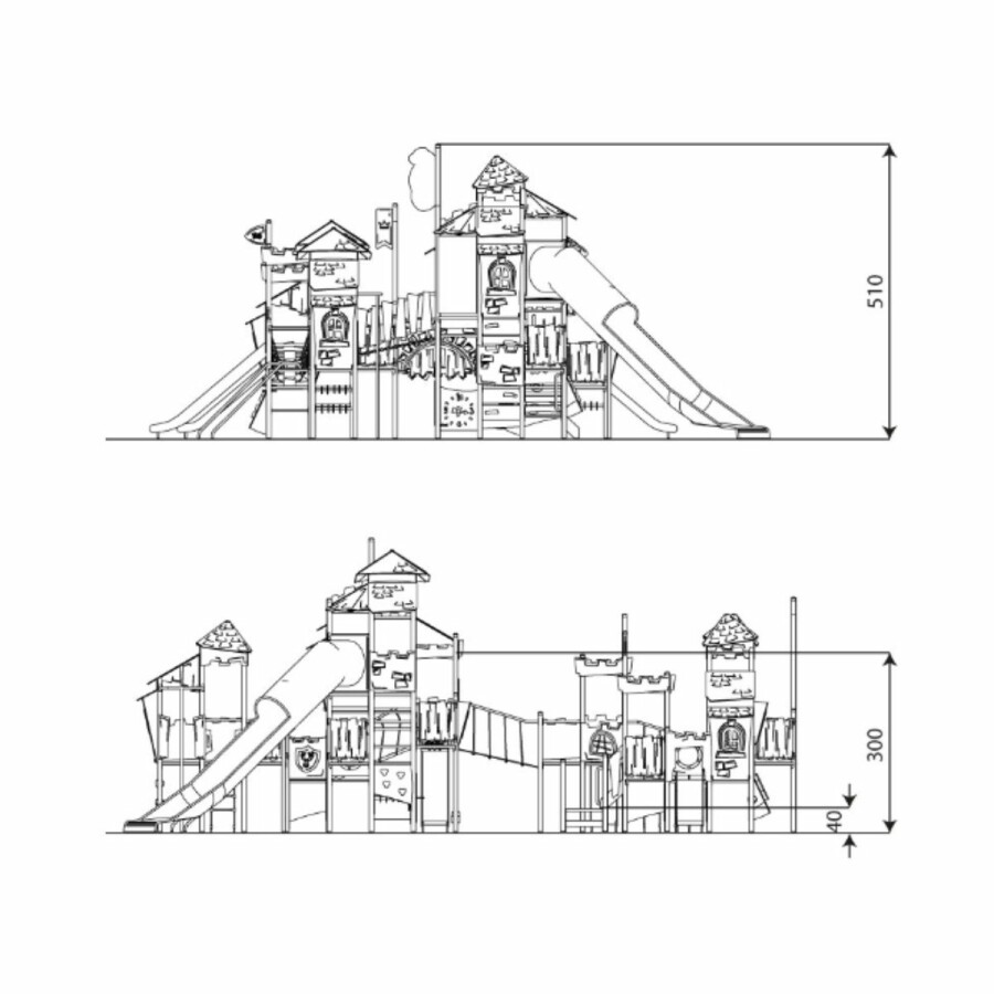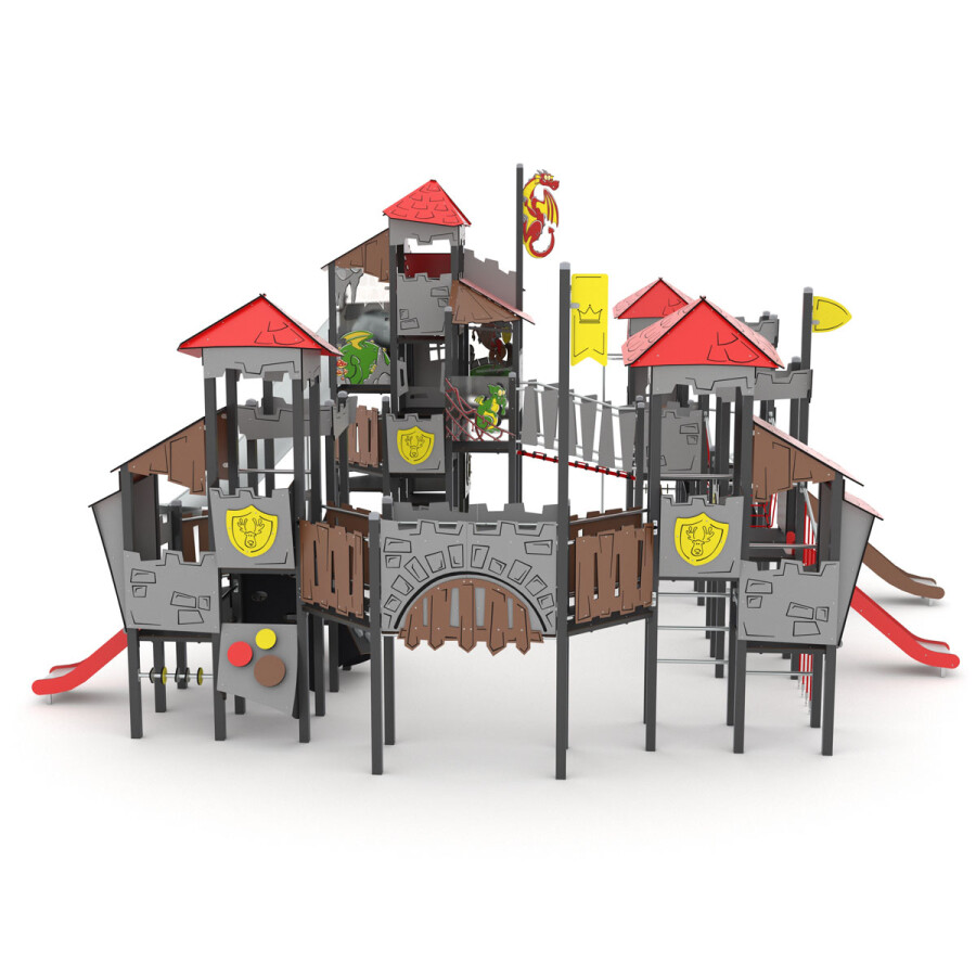 Roep je vriendjes bij elkaar en ga op ontdekkingstocht door dit oude kasteel. Versla jij de vijand? Dit multifunctionele speelkasteel bevat diverse speelniveaus, waardoor dit toestel uitermate geschikt is voor elke leeftijd.