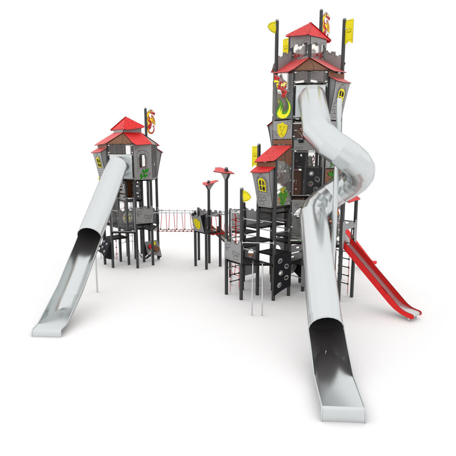 Roep je vriendjes bij elkaar en ga op ontdekkingstocht door dit oude kasteel. Versla jij de vijand? Dit multifunctionele speelkasteel bevat diverse speelniveaus, waardoor dit toestel uitermate geschikt is voor elke leeftijd.