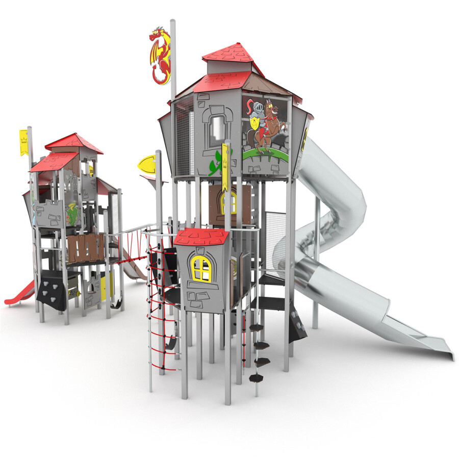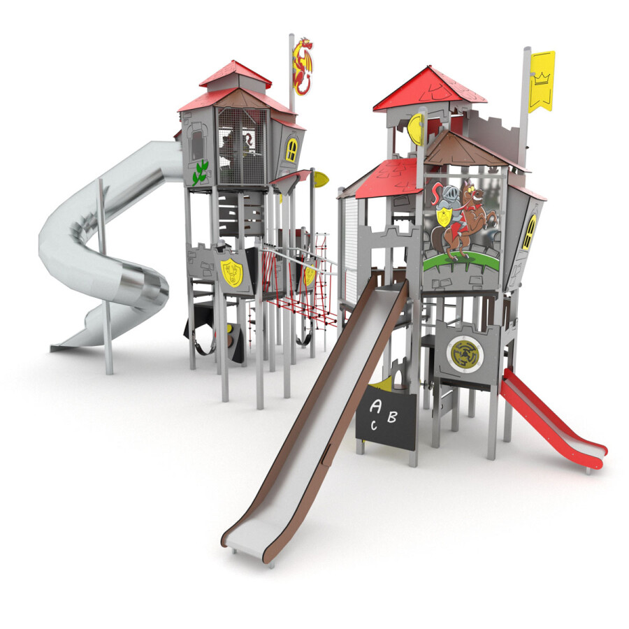 Roep je vriendjes bij elkaar en ga op ontdekkingstocht door dit oude kasteel. Versla jij de vijand? Dit multifunctionele speelkasteel bevat diverse speelniveaus, waardoor dit toestel uitermate geschikt is voor elke leeftijd.