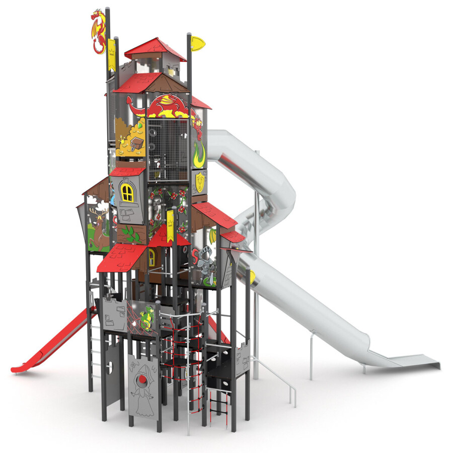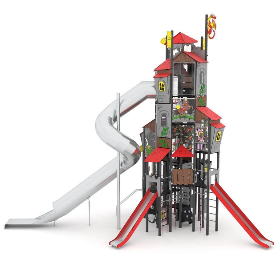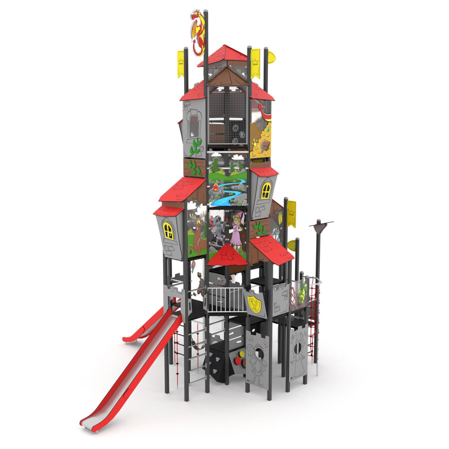 Roep je vriendjes bij elkaar en ga op ontdekkingstocht door dit oude kasteel. Versla jij de vijand? Dit multifunctionele speelkasteel bevat diverse speelniveaus, waardoor dit toestel uitermate geschikt is voor elke leeftijd.