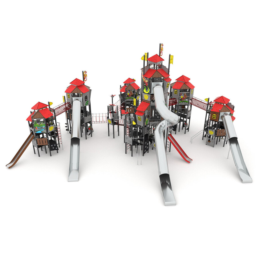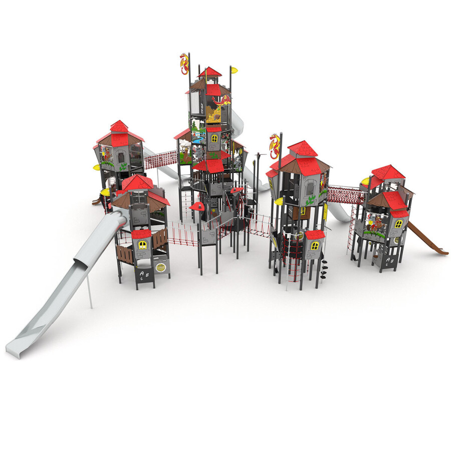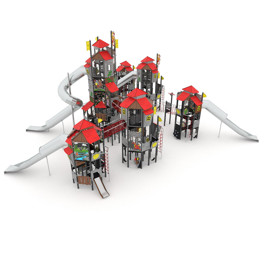 Roep je vriendjes bij elkaar en ga op ontdekkingstocht door dit oude kasteel. Versla jij de vijand? Dit multifunctionele speelkasteel bevat diverse speelniveaus, waardoor dit toestel uitermate geschikt is voor elke leeftijd.