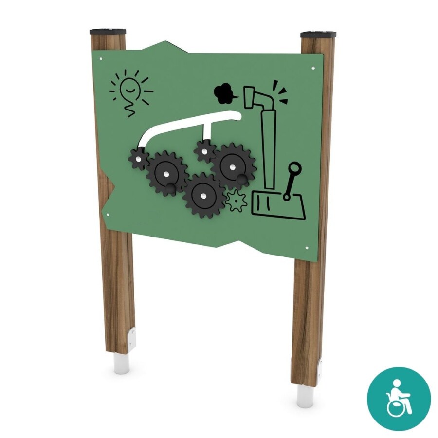 Werk jij in een fabriek? Zorg ervoor dat de tandwielen altijd soepel lopen. Laat je fantasie tot leven komen met dit speelpaneel.