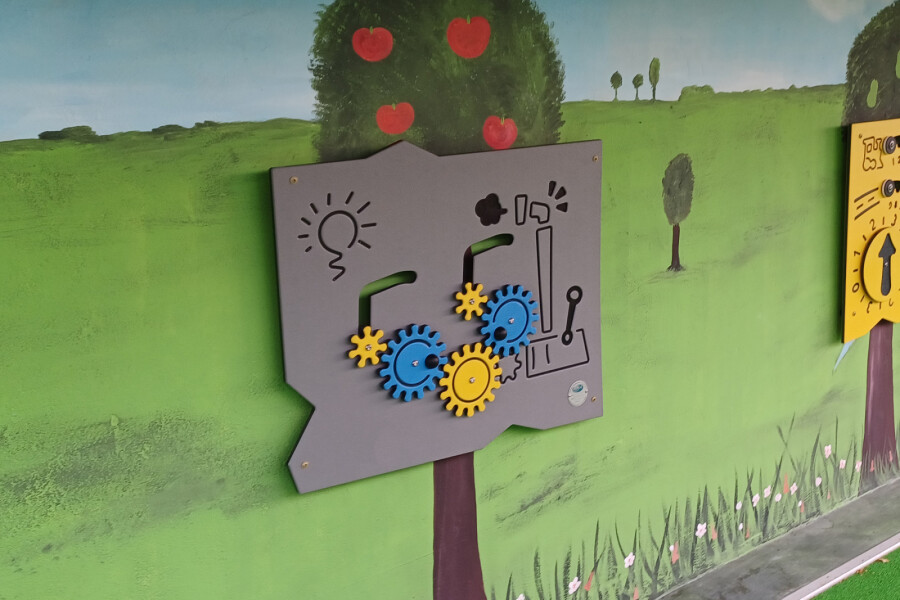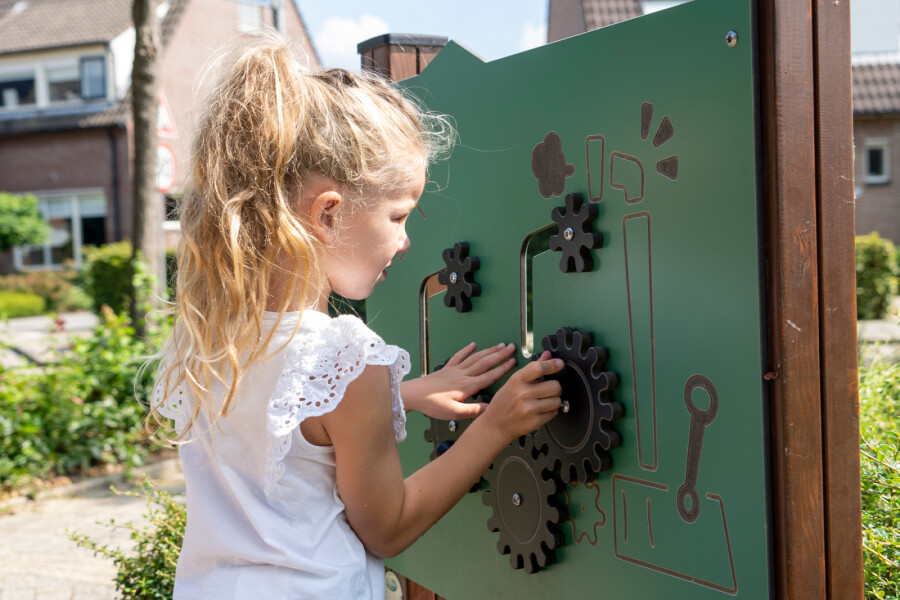 Werk jij in een fabriek? Zorg ervoor dat de tandwielen altijd soepel lopen. Laat je fantasie tot leven komen met dit speelpaneel.
