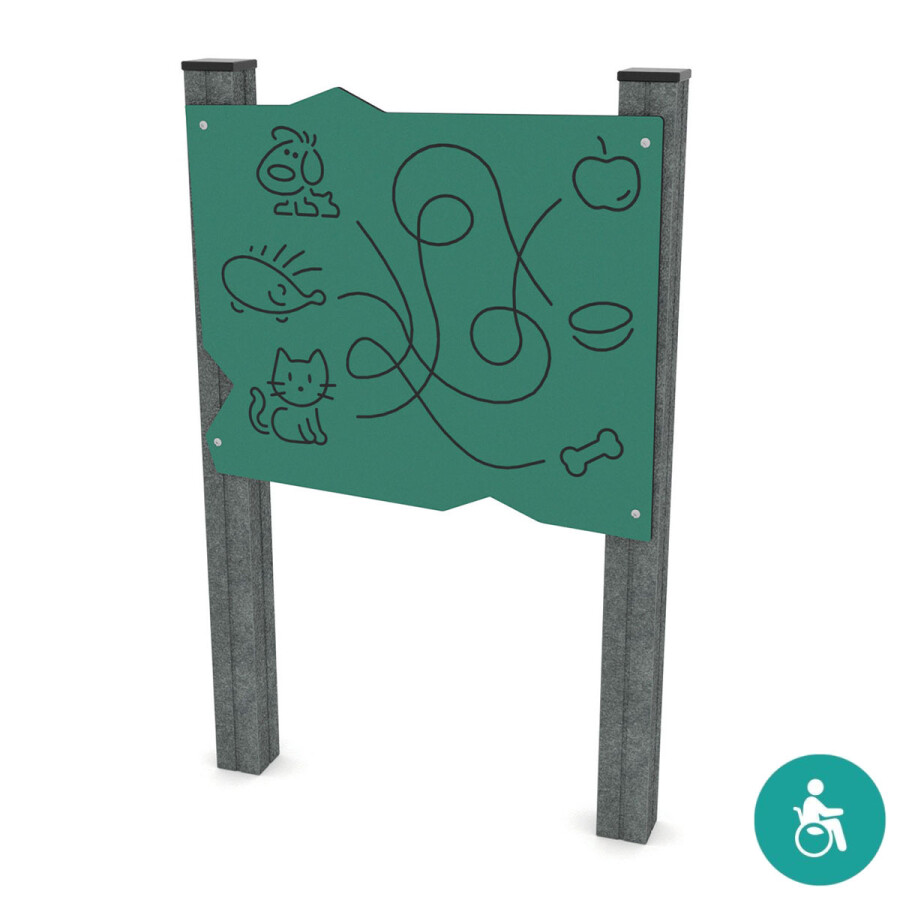 Los de puzzel op en geef de dieren hun eten. Laat je fantasie tot leven komen met dit speelpaneel.