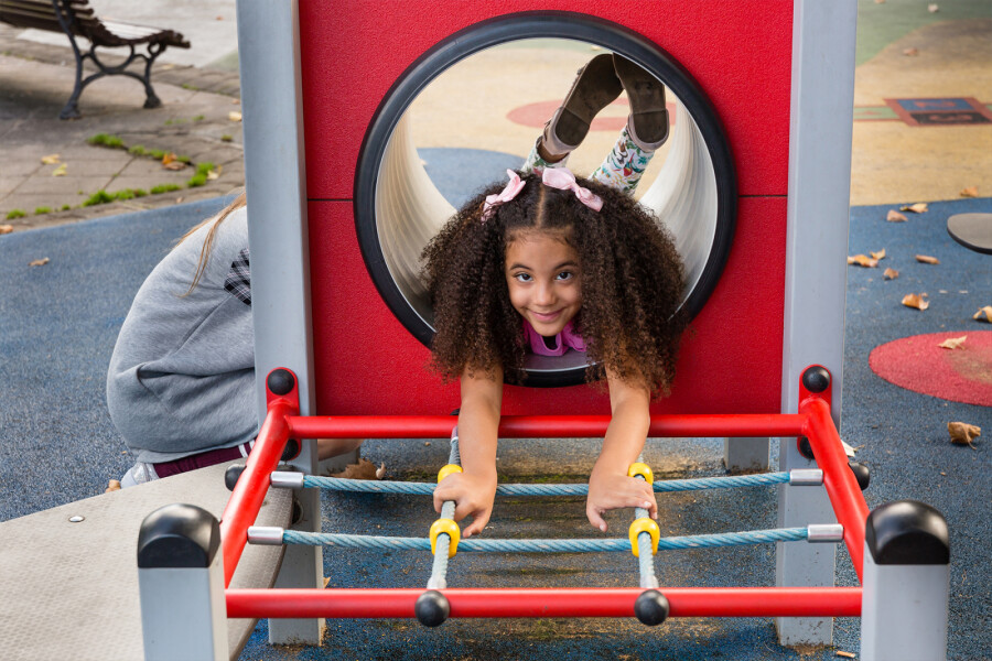Klauter en klim als een aapje door de jungle en ontdek een nieuwe wereld als je door de kruipbuis kruipt.