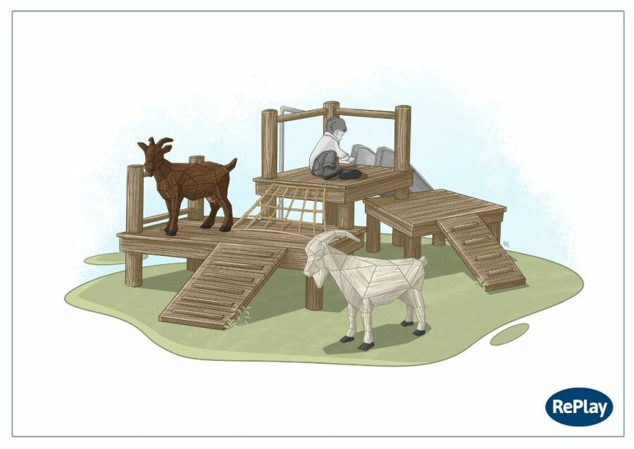 Mèèh, mèèh, de houten geiten willen graag samen met je spelen in hun geitenweide!
